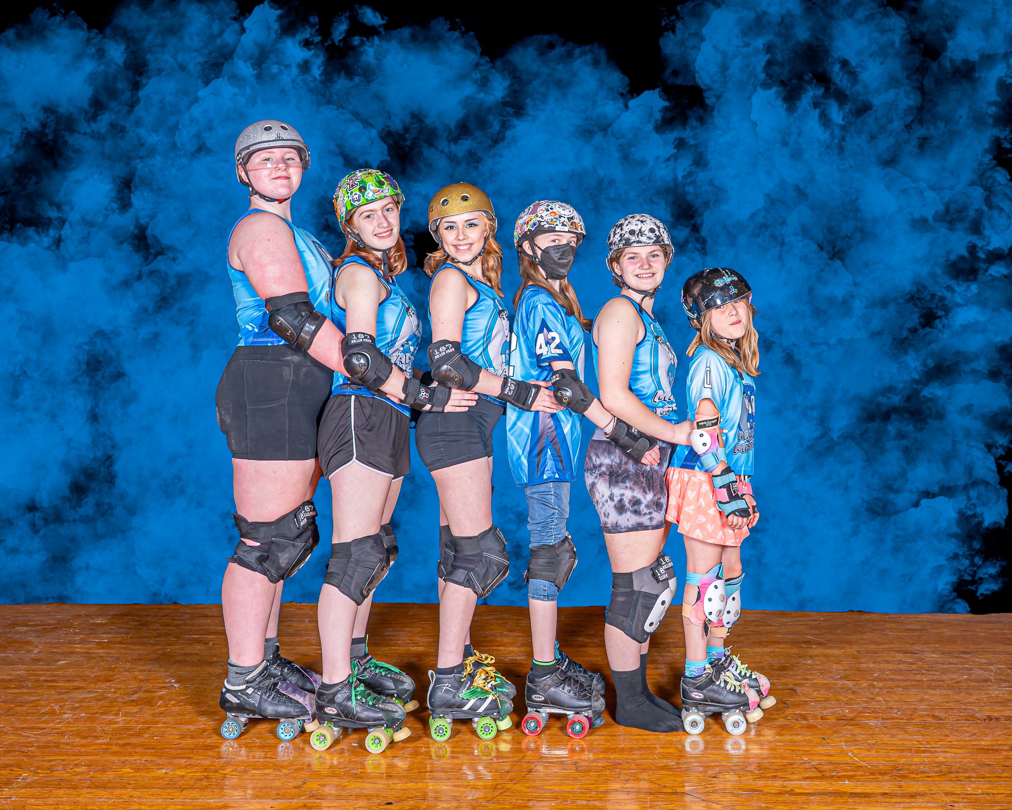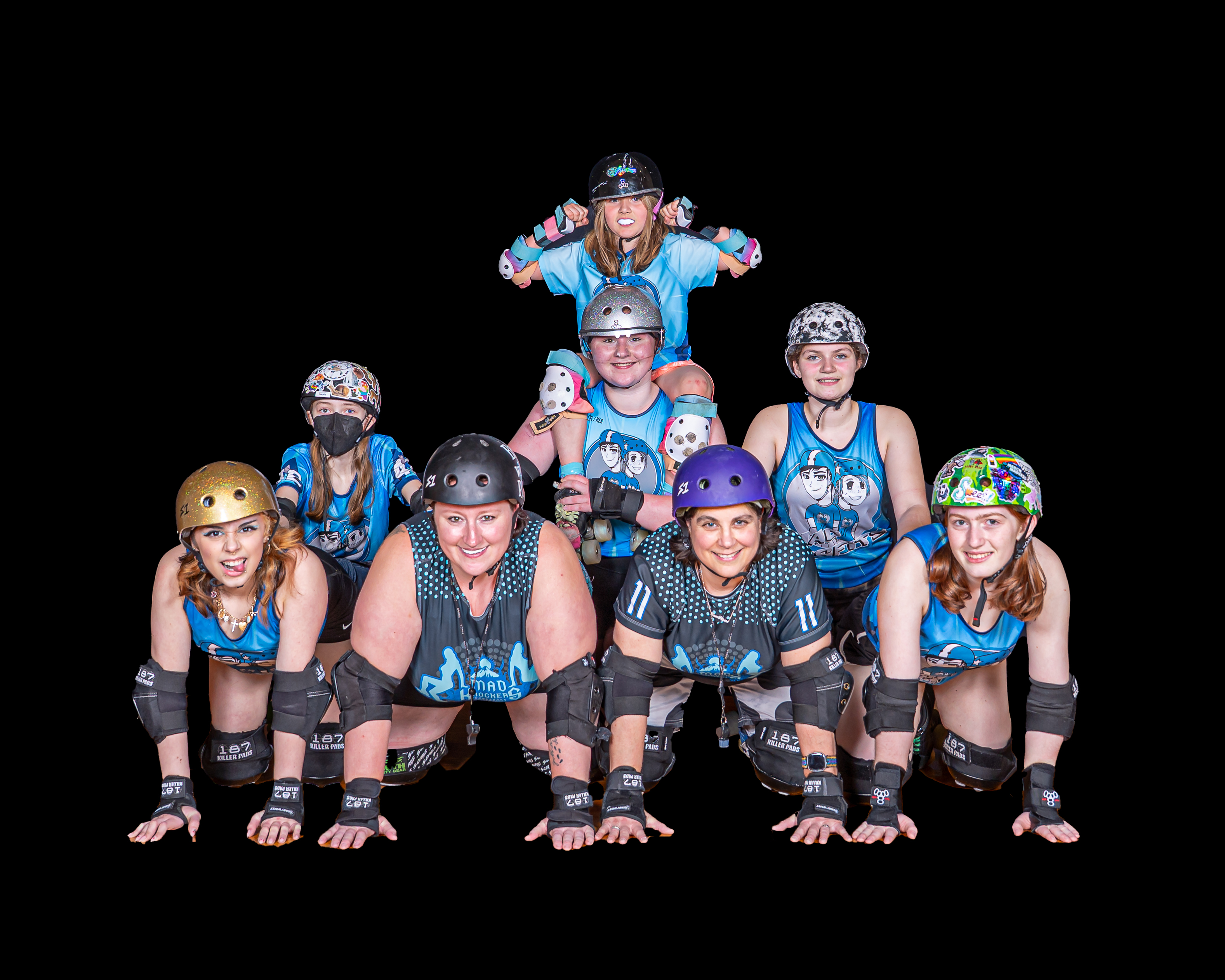 Monadnock Roller Derby’s Junior Team, The Mad Misfits, is open gender, ages 7-17. Junior roller derby doesn’t start out with hitting like the women, only blocking by position, but with all the fun, fitness, teamwork, confidence, and joy that roller derby is all about. We compete with other junior teams in New England and play by Junior Roller Derby Association (JRDA) rules. Juniors work through L1, L2, and L3 skills.