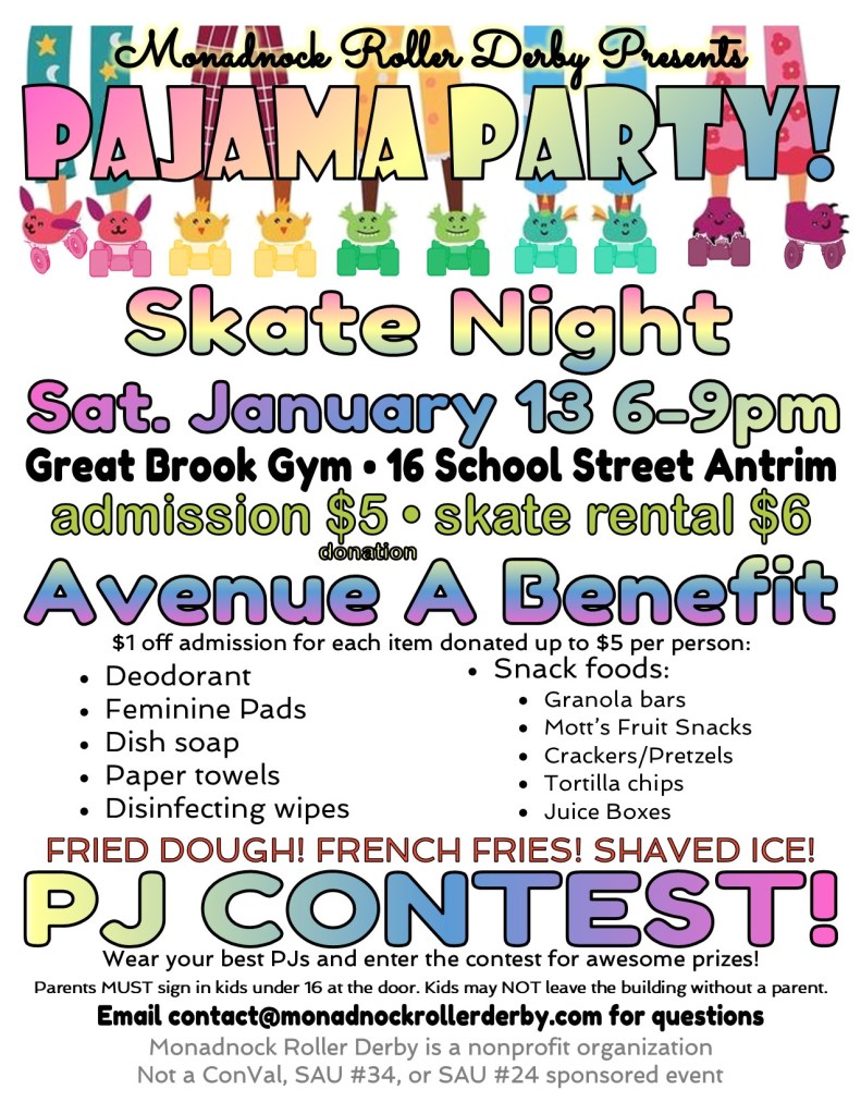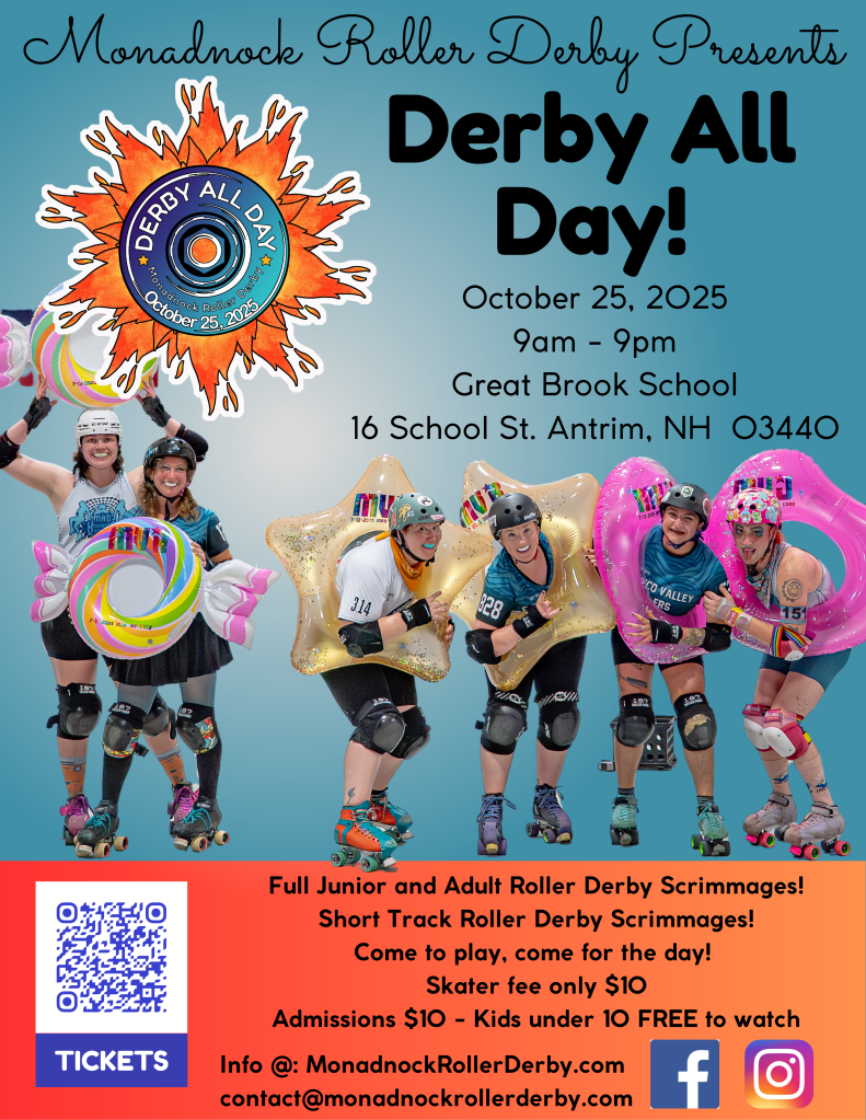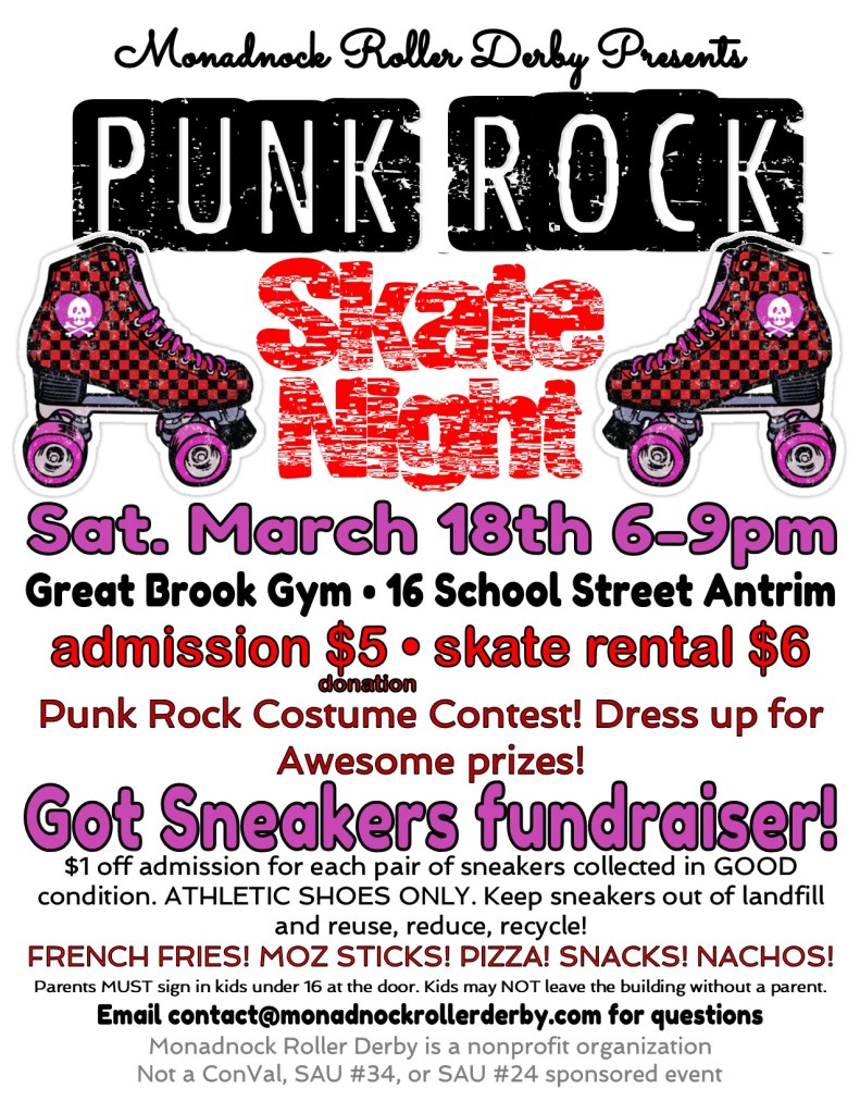 Come to the FIRST skate night put on by Monadnock Roller Derby since the COVID 19 shut sown of 2020 with “Return of the Skate Night”! An 80s Movie theme skate night.